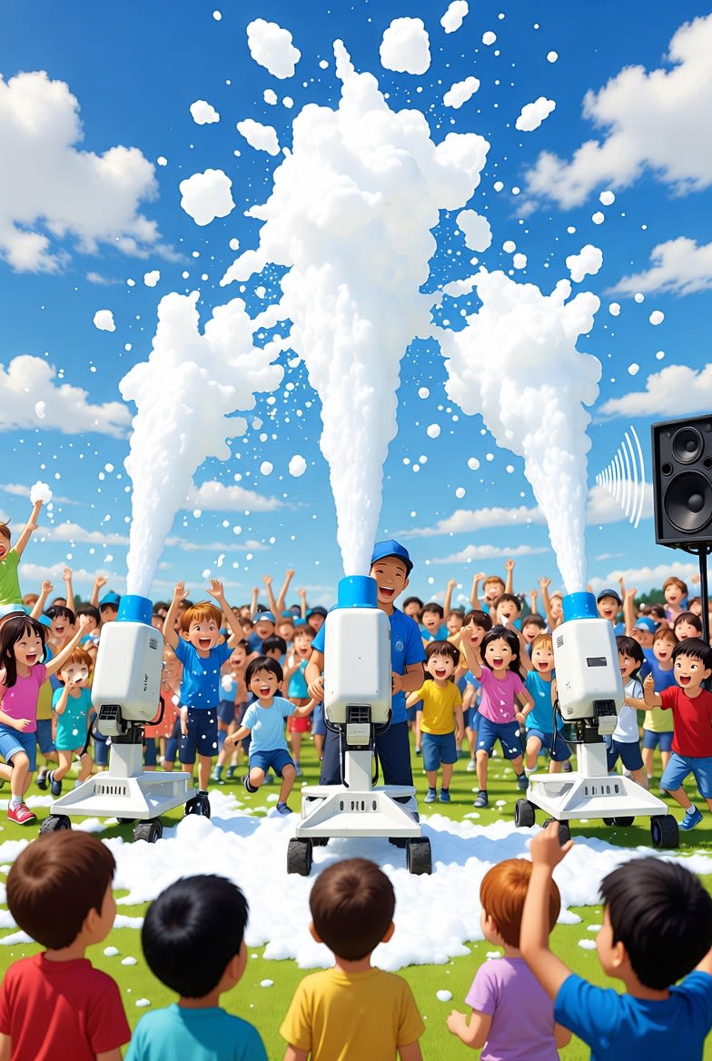 THREE commercial-grade foam machine shoots foam up to 30 ft, covering a 30x30 ft area 4 ft high — and with three cannons the coverage multiplies for festival-sized foam coverage. Our crew handles setup, operation, and cleanup so you can enjoy the laughs, the slides, and the inevitable foam moustaches. π§Όπ¨π©π§π¦